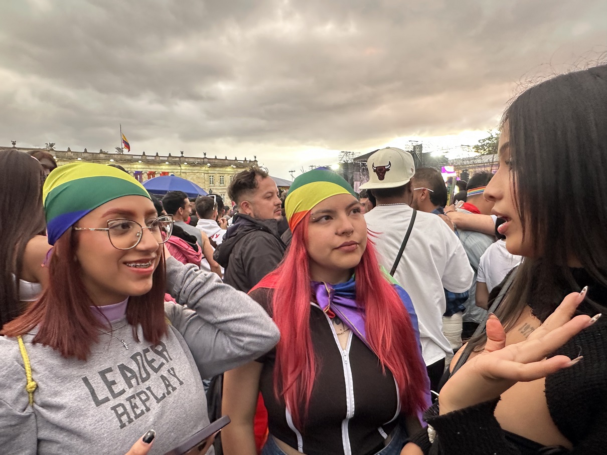 Al llegar a la Plaza de Bolívar, el ambiente se tornó en una mezcla de carnaval y foro público. El centro neurálgico de la capital se desbordó con la presencia de miles de personas, tiñendo el lugar de los colores del arcoíris. No cabía un alma más. El lleno fue total, un testimonio visual del poder de convocatoria y la relevancia de esta fecha para la sociedad bogotana.