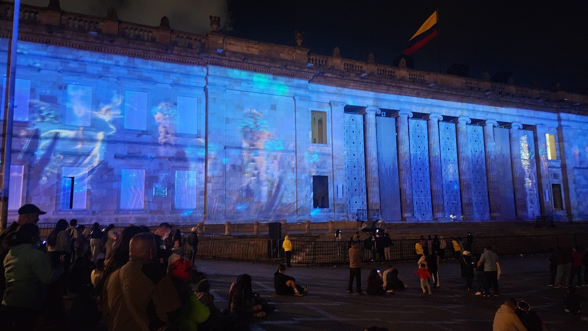 Eran pasadas las seis de la tarde. El frío característico de la noche bogotana intentaba imponerse, pero fue rápidamente solapado por la calidez de las luces, los reflectores y las imágenes que comenzaron a desplegarse sobre las imponentes fachadas del Palacio de Justicia, el Capitolio Nacional, la Alcaldía Mayor y la Catedral Primada.